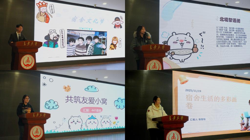 决赛为宿舍风采展示环节,各个参赛宿舍通过ppt、视频等形式展示宿舍独特文化,展现舍友间浓厚情谊,丰富多彩的才艺表演呈现出同学们蓬勃向上的朝气与活力。从宿舍卫生到生活氛围,从学风建设到宿舍团建,各具特色的展示不仅表现了同学们的个性与才华,也深刻体现了电控学子之间的包容体贴与团结和睦,呈现积极向上的精神风貌。