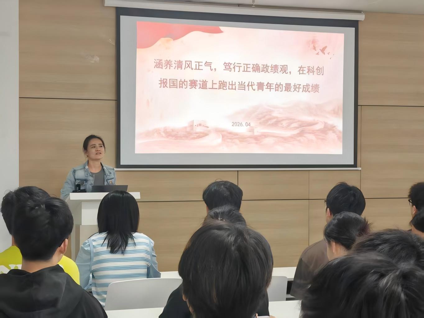 高婷婷系统阐述了开展树立和践行正确政绩观学习教育的总要求,强调全体党员要深刻认识其政治意义、理论意义和实践意义,把正确政绩观贯穿到服务师生、奉献社会的全过程。她结合青年党员成长特点,提出三点要求:一是要深刻领悟“政绩为谁而树”,坚决摒弃形式主义等功利思想,将服务同学和解决实际问题作为担当;二是要时刻保持拒腐防变的政治清醒,严格恪守学术道德底线,在评奖评优等具体工作中严防“微腐败”;三是要传承学校校训精神,将正确政绩观落脚于笃行实干,做求真务实的科研先锋与严于律己的作风表率,在“十五五”新征程中展现青年党员的新担当、新作为。